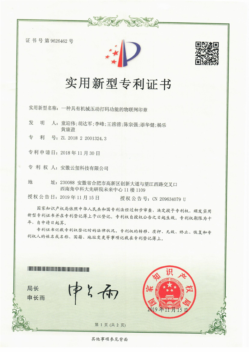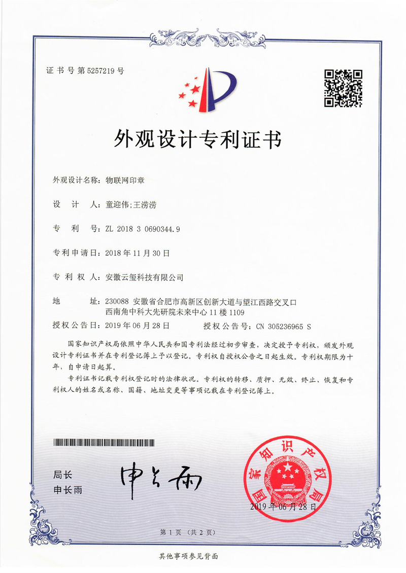 公司原創(chuàng)發(fā)明一體式智能印章技術(shù),引領(lǐng)國內(nèi)外新一代智能印簽創(chuàng)新變革。獲中日韓多項發(fā)明專利,徹底解決了實體印章和電子印簽管控的社會難題,獲國務(wù)院國資委全國央企熠星二等獎。公司聯(lián)合國家信息安全產(chǎn)品認(rèn)證中心、公安部三所、信通院、中國印章協(xié)會等,主導(dǎo)起草了行業(yè)首個智能印章安全認(rèn)證標(biāo)準(zhǔn)和智能印章產(chǎn)品標(biāo)準(zhǔn),引領(lǐng)了智能印章行業(yè)發(fā)展。